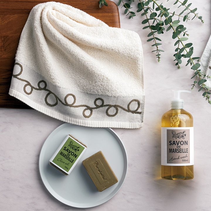 フランスのマルセイユで作られた植物性の石鹸と有機精錬イソフラボン加工を施したタオルを組み合わせたギフトです。