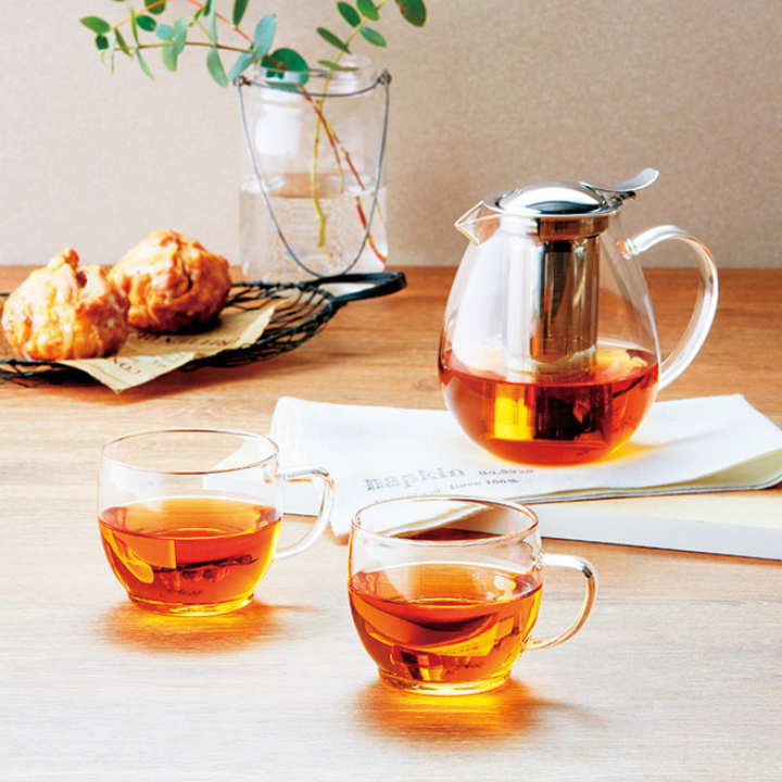 耐熱ガラス製のおしゃれなティーセット。クラシカルでエレガントなデザインです。あたたかみのあるフォルムの耐熱ティーウェア。ゆったりとした時間をお楽しみ頂けます。