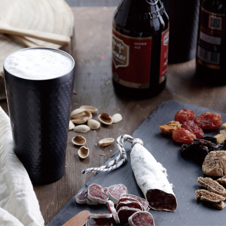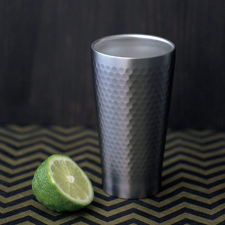 真空二重構造のステンレスカップ。美味しさ、飲みやすさを追求した真空二重構造のステンレスカップです。冷凍庫で冷やして氷の代わりとして使えるフローズンメタル付き。