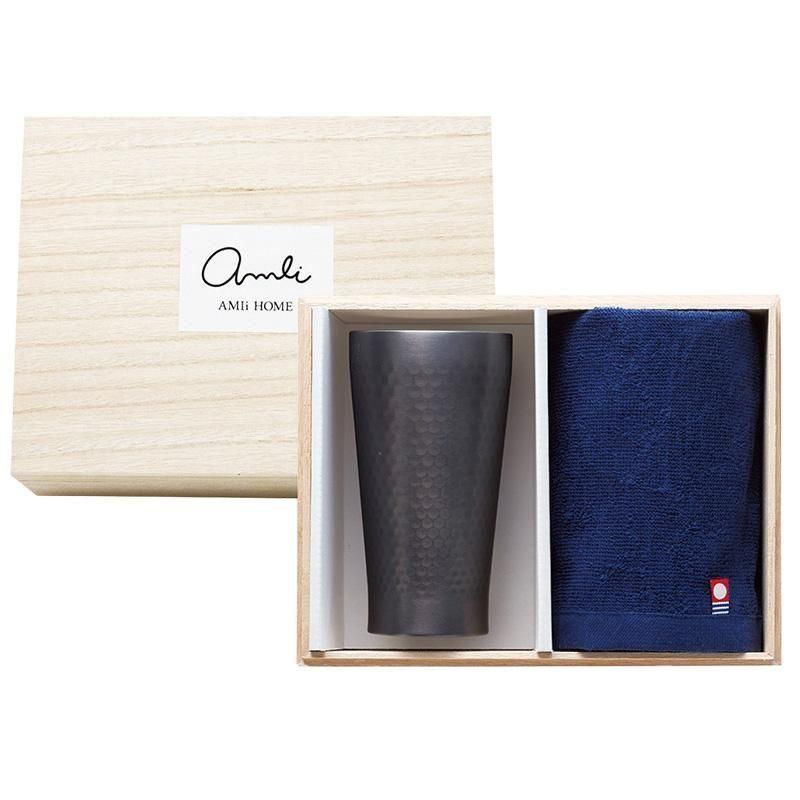 AM-1744:タンブラーセットA(タンブラー&タオル(ネイビー))
