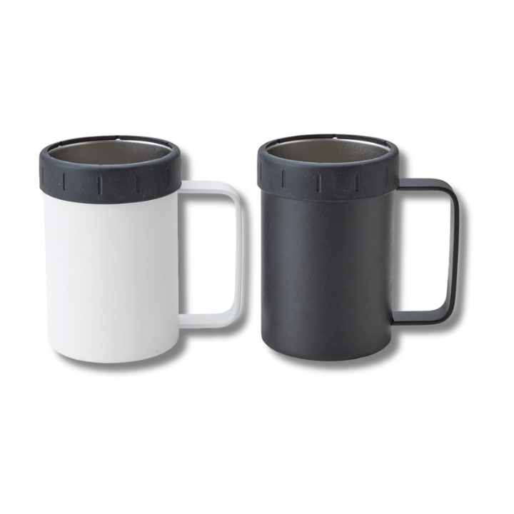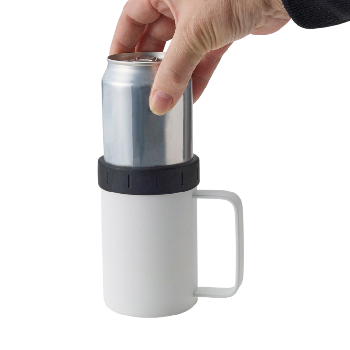 最後のひとくちまで冷たい!ハンドル付で持ちやすくなった缶ホルダー。350ml・500mlの缶がそのまま入り、保冷効果により冷たさが持続します。缶の抜け落ち防止用のシリコンを外すと350ml・500ml入る真空2層のビアジョッキとしてお使いいただけます。夏はアウトドアシーン、バーベキューやキャンプ、冬は暖かい部屋で鍋と共に冷えたビールをお楽しみください。