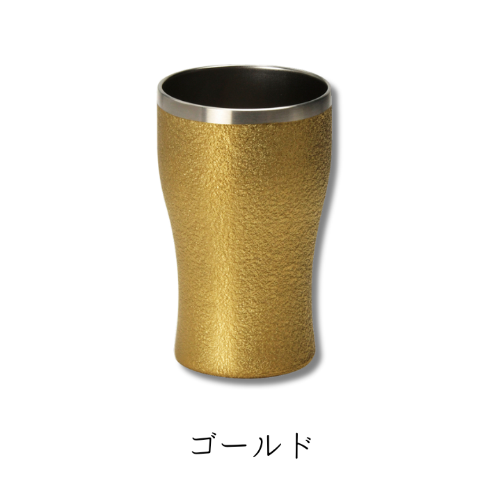 金銀に輝く贅沢な質感のステンレス製真空二層タンブラー。持ちやすく手になじむ、くびれのあるフォルムとなっています。