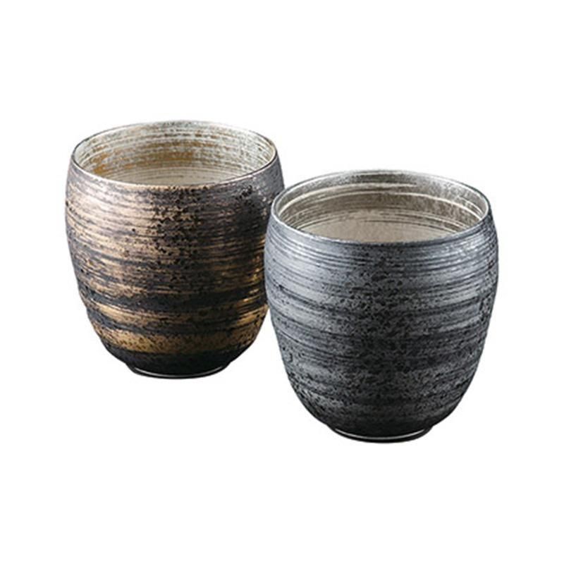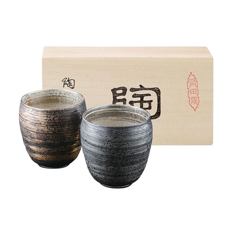 有田焼 陶悦窯 金銀刷毛 ペア焼酎カップ (オリジナル木箱入り)