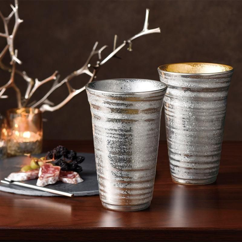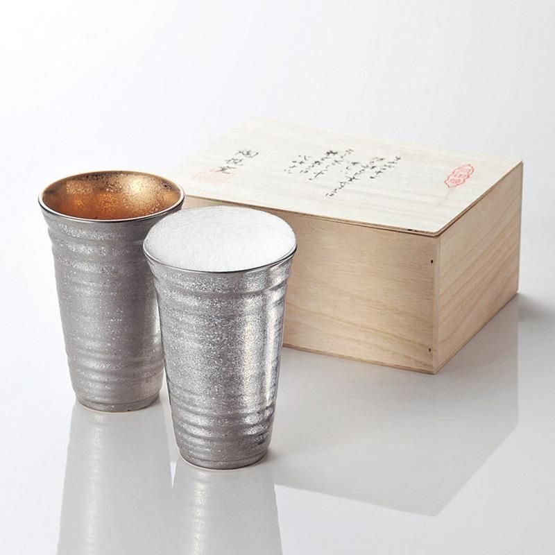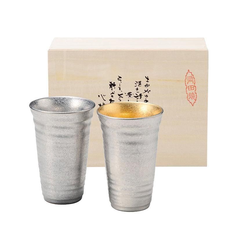 有田焼 陶悦窯 プラチナ塗り ペア反ビア大(オリジナル木箱入り)