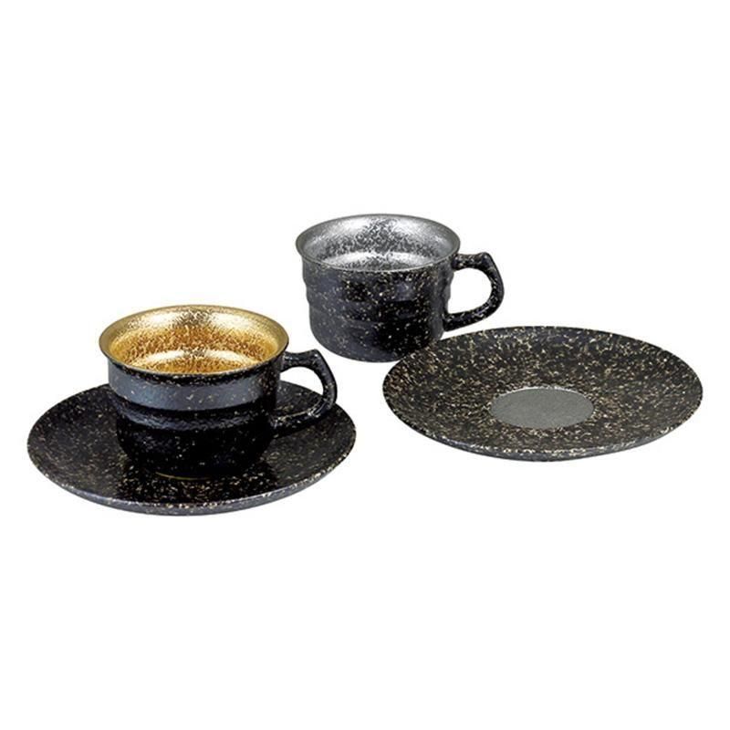 有田焼 陶悦窯 黒マット吹金銀 ペア珈琲碗皿